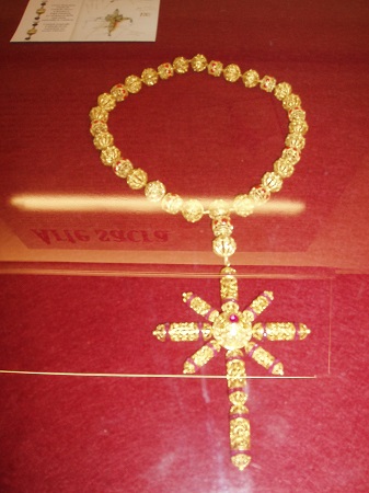Sorride il folto pubblico per la spontaneità offerta mentre egli prosegue: Del mio lavoro ricordo l’improvvisazione unita alla manualità:quelle perline minuscole, le gemme…e pietre che divenivano cristalli con carta dei cioccolatini qual preziosa rifinitura. L’oreficeria va sempre reinterpretata, ogni cosa parla, racconta…ho attinto anche dall’arbresc (artigianato albanese), ma è fondamentale metterci del nostro. Nel 1984 lavorai per Zeffirelli, per il film “Il giovane Toscanini”, eppoi sempre per lui feci creazioni per l”Amleto”. Mi hanno cercato anche altri ‘grandi’, ma penso che quello che è esposto qui, nelle teche della Regione, parli meglio di me.”