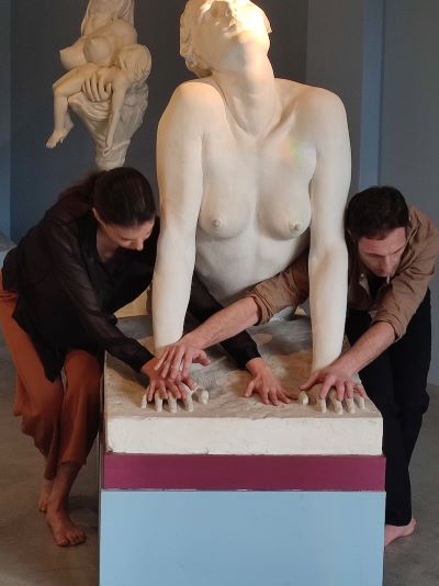 Si passa infine al contatto diretto con le opere presenti nel museo, (precedentemente selezionate in collaborazione con i mediatori museali), per vivere in prima persona l’incipit della performance svoltasi precedentemente, che inizia toccando la scultura e lasciando che il corpo ascolti e risponda.