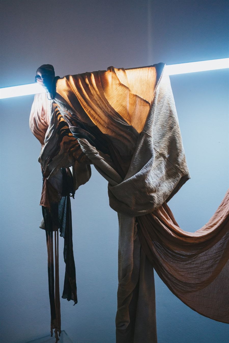 Gli studenti hanno lavorato in gruppi trasversali, favorendo un incontro tra competenze e prospettive eterogenee. Un sistema aperto, basato su scambio costante e confronti settimanali, in cui è stata fondamentale la figura di Bill Kouligas, in veste di curatore e mentor: presenza critica che, attraverso il proprio approccio ibrido, ha stimolato la convergenza tra linguaggi. Il risultato è un lavoro corale, dove ogni competenza contribuisce a un sistema organico e interattivo. Pensata come un’esperienza, l’opera prende forma in uno scenario installativo dove tessuti, immagini in movimento, segnali sonori e stimoli sensoriali si intrecciano in tempo reale. Un ecosistema ideato per attivare un dialogo diretto con i corpi presenti nello spazio. Al centro dell’installazione, un’architettura di luce e tessuto prende vita grazie a sensori che reagiscono al movimento dei performer e del pubblico. I performer indossano capi progettati e realizzati dagli studenti, diventando parte integrante dell’ambiente interattivo. I visitatori sono inoltre parte attiva e interattiva del paesaggio audiovisivo: i gesti generano suoni che a loro volta vanno a modulare le proiezioni su superfici tessili sfruttate in qualità di interfacce attive, in un loop continuo tra stimolo e risposta, dando forma a un ecosistema dinamico che mette in dialogo corpi umani e corpi celesti, arte e tecnologia, materia e immaginazione.