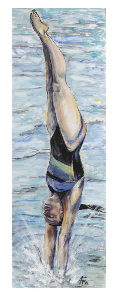La mostra propone infatti 25 opere che abbracciano ben 14 anni di carriera artistica di Rogai, comprendendo 13 dipinti su tela – tra i quali Il tuffo perfetto, concepito quest’anno proprio come omaggio al mare della Versilia e che rappresenta l’immagine portante dell’intera esposizione -, e poi cinque dipinti su denim (il tessuto dei jeans che da motti anni rappresenta un supporto particolarmente caro all’Artista) e sette scaglie di marmo dai 10 ai 25 chilogrammi, su cui Elisabetta Rogai ha dipinto figure per lo più femminili utilizzando colori a olio e vino.